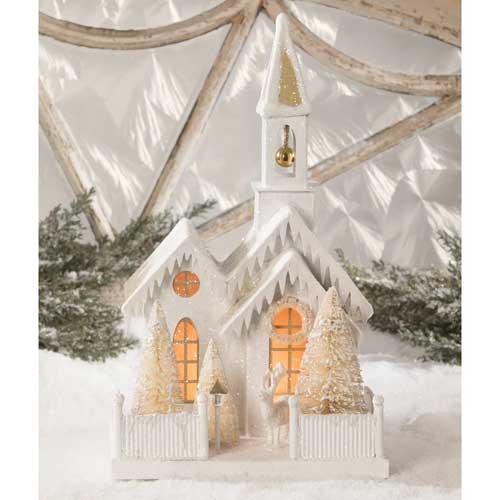 Bethany Lowe Designs creates vintage inspired, artisan crafted holiday decor perfect for your home! Make a festive, wintery scene with this beautiful putz church.