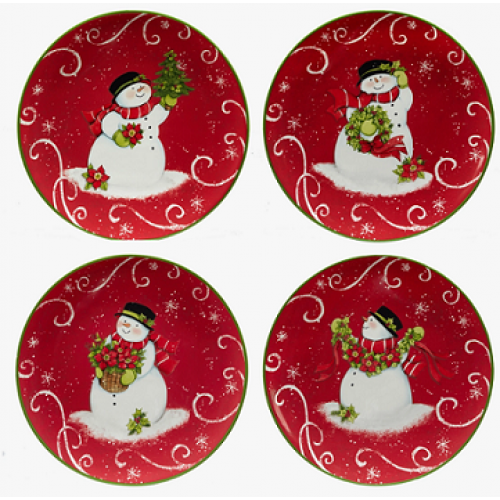 Snowman Dessert Plate. Set of 4, Part of the Holiday Magic Collection. 9 inches.