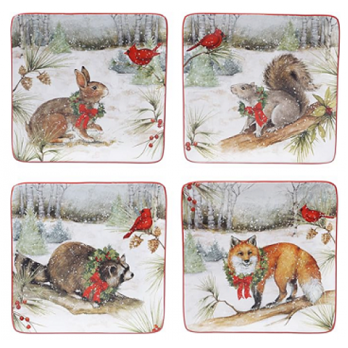 Winter Forest Dessert Plate 8.5 inches Set of 4 Assorted Designs Materials: Earthenware Dimensions: 22x22x1
