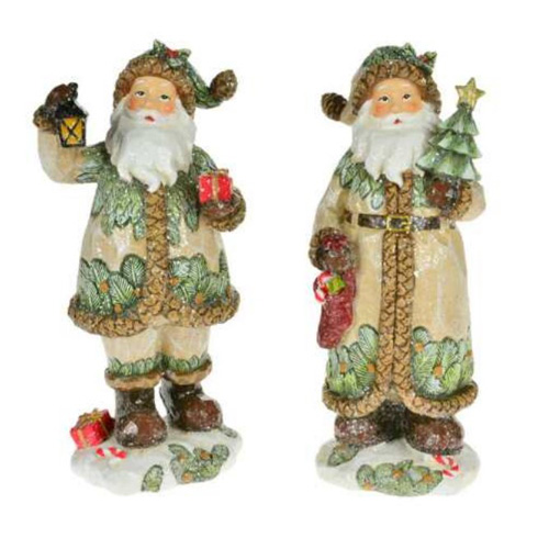 COUNTRY SANTA W/TREE/LANTERN, Set of 2, 8.5"
