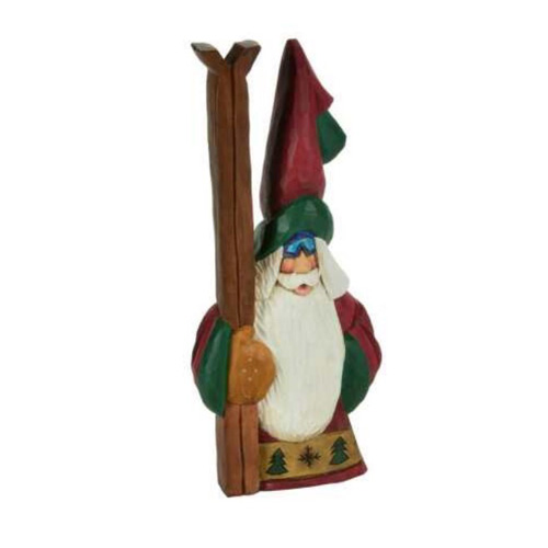 Hand crafted replica of original wood carved SKIER TALL HAT SANTA, 9" Materials: Resin Dimensions: 9 x 2 x 2"