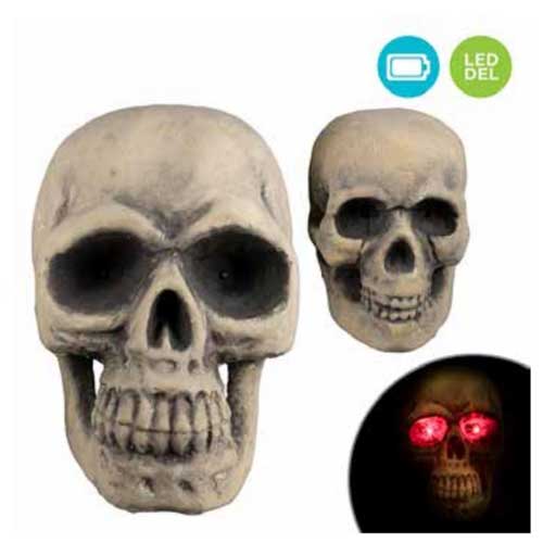 SET OF 2 FOAM LIGHT-UP SKULLS WITH RED LED EYES, 2 SIZES PER SET, 35cm + 20cm