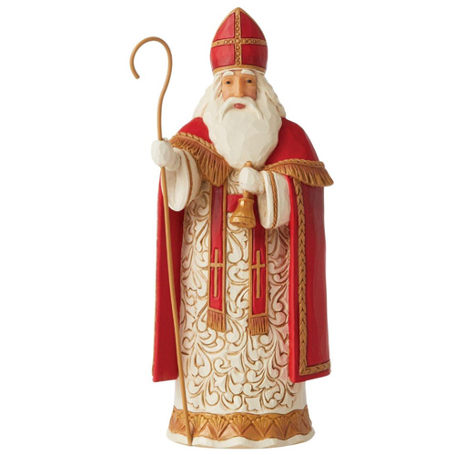 Jim Shore's Santas Around the World collection showcases the globe's many holiday traditions. Wearing a traditional robe and customary Christmas cap, this Belgian Santa is known as St. Niklaas. Be generous and he might gift you some Yule log. Jim Shore Heartwood Creek Santas Around The World Collection Beautifully hand-painted and crafted from high-quality stone resin with intricate styling and attention to detail Jim Shore's unmistakable style evokes a sense of nostalgia with traditional themes, quilt patterns and design motifs inspired by American and European Figurine 7.2in H