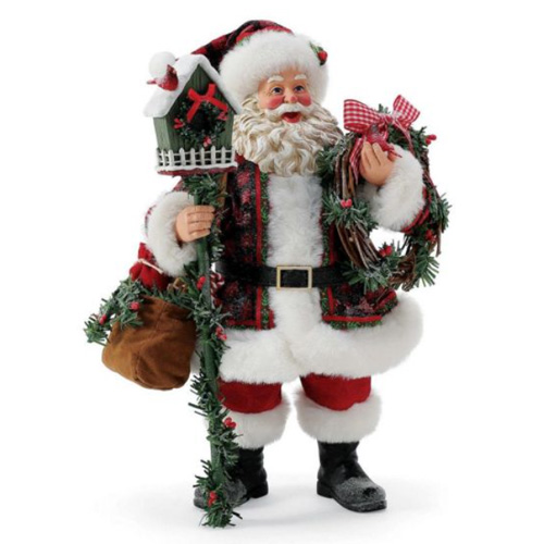 This Country Living licensed Possible Dreams collectible Clothtique Santa features the best of everything. He carries a sachet and wreath full of greenery as well as holds a staff decorated with snow, foliage and cardinal. Country Living is the life for Santa! Designed by U.S. artist, Ann Dezendorf and featuring the Possible Dreams signature brass tag, this Christmas collectible is uniquely sculpted and hand painted.