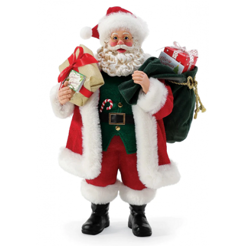 Designed by U.S. artist, Ann Dezendorf and featuring the Possible Dreams signature brass tag, this Christmas collectible is uniquely sculpted and hand painted. Features our signature Clothtique stiffened fabric. Hand-painted and assembled with intricate detail and artistic expertise. Possible Dreams is the #1 Santa Brand. Figurine 10.5in H