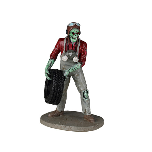 Description: A companion piece to the Last Ditch Tow Truck, the Last Ditch Zombie is just one of the team of mechanics who will get your car back on the road. Zombies in Spooky Town aren't just mindless creatures, many have jobs. This overall-clad zombie, complete with the eccentric touch of flying helmet and goggles, lugs a heavy tire over to the vehicle for the change out. Your car will soon be up and running again so you can get out of there … fast!