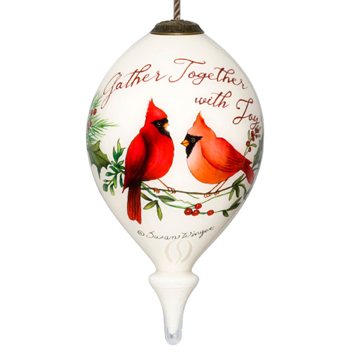This Inner Beauty ornament is intricately hand-painted on the inside of mouth-blown glass using the ancient technique of reverse hand-painting. Each image is created using thousands of delicate paint strokes applied to the inside surface of the glass resulting in a truly unique work of art. Each ornament is beautifully packaged in a satin-lined, brushed suede gift box which includes a full-color story card describing the technique of this ancient art form. An adjustable antique gold-colored cord with tassel provides a beautiful and easy way to hang each ornament on a Christmas tree or a decorative ornament stand.