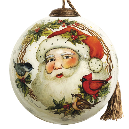 This Inner Beauty ornament is intricately hand-painted on the inside of mouth-blown glass using the ancient technique of reverse hand-painting. Each image is created using thousands of delicate paint strokes applied to the inside surface of the glass resulting in a truly unique work of art. Each ornament is beautifully packaged in a satin-lined, brushed suede gift box which includes a full-color story card describing the technique of this ancient art form. An adjustable antique gold-colored cord with tassel provides a beautiful and easy way to hang each ornament on a Christmas tree or a decorative ornament stand.