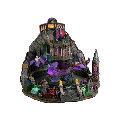 Description: A ride for those who wish to fly like our favourite Count Dracula! Step aboard The Count’s Bat Bonanza and become air bound on one of the charismatic purple bats. As you glide up and down you can catch a glimpse of Dracula himself, surveying his ride creation from on high. Don’t forget to look down to see a coffin or two on the ground for added thrill factor!