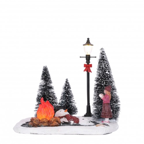 Jules just learned not to build her snowman beside the glowing, hot fire!