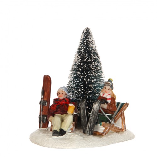 Tess and Zoe take a break from skiing for refreshment. L7.5 x w10 x h10cm