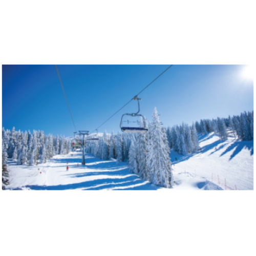Use the SKI LIFT background to create a background/backdrop behind your christmas village or scenery. It features an image of a ski lift going over a ski slope within a snow covered forest.